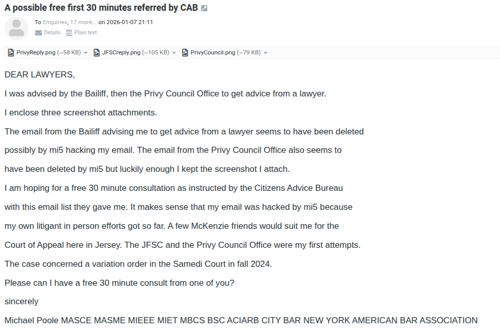 Still sensitive from when the local Police intercepted an important letter from a lawyer of mine after reading my private https protocol email. I found the Bailiff Advice email