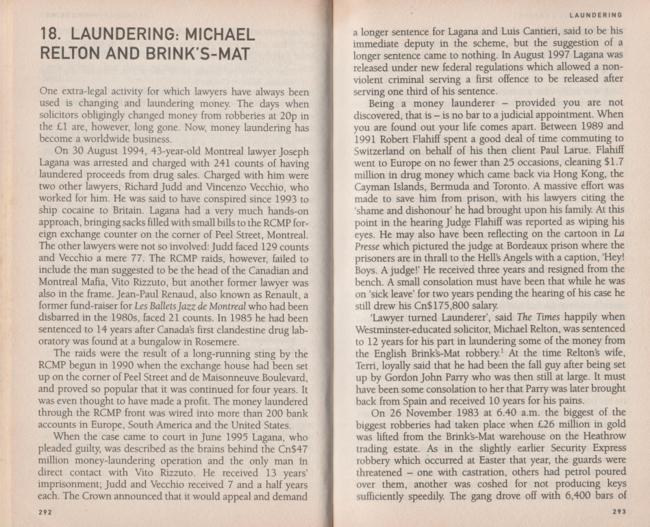 be that if your lawyer or banker gets nicked they are unlikely to clam. Clayton and Scholefield included.