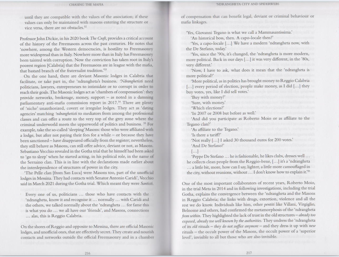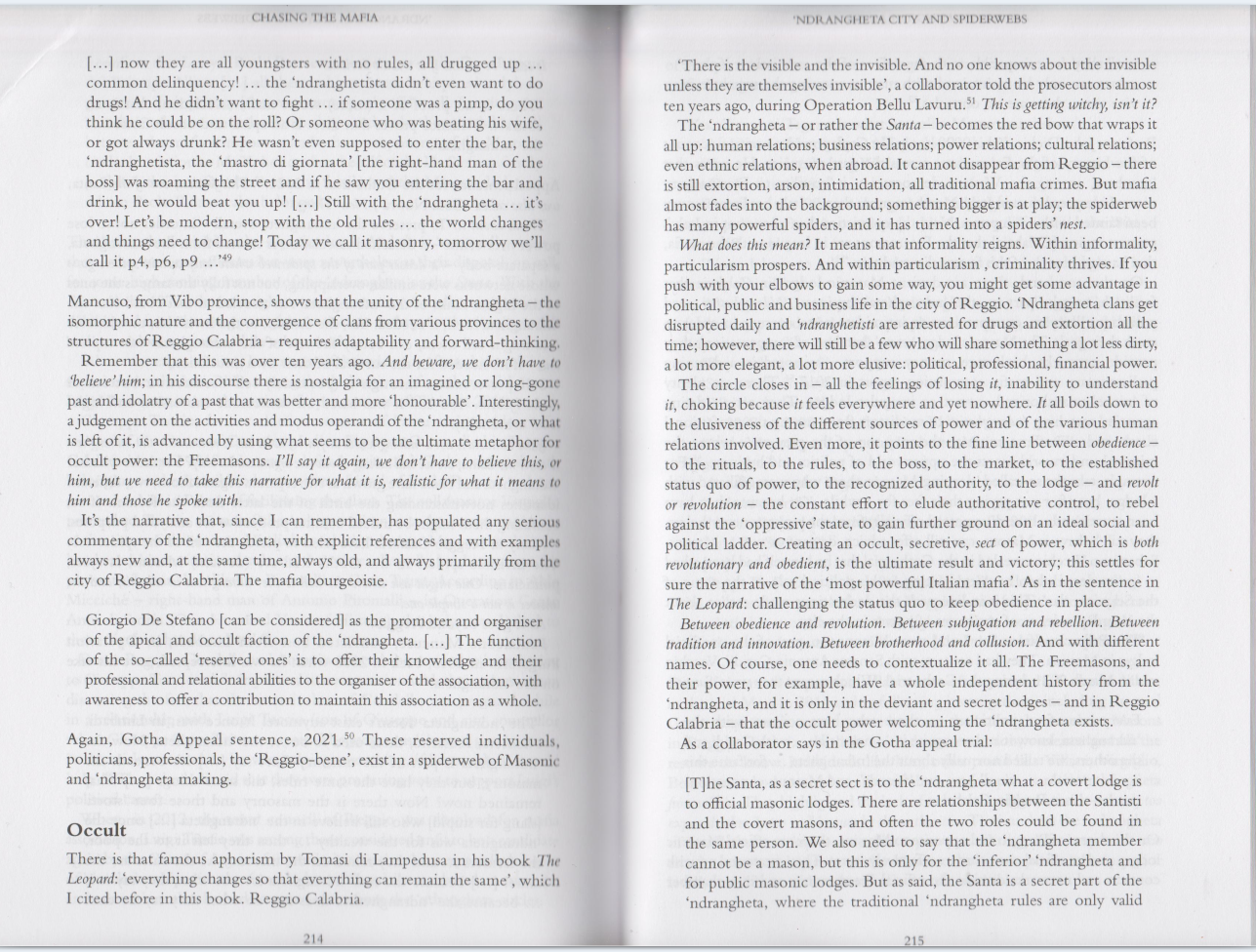 The two samples pages above show how organised crime like the ndrangheta here threaten you